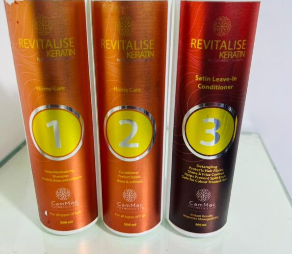 Complete your professional keratin treatment with the essential CamMac Cosmetics REVITALISE KERATIN Satin Leave-In Conditioner, part of the Home Care system (Bottle #3). This advanced leave-in formula is expertly designed to protect, detangle, and infuse your hair with long-lasting moisture, ensuring your keratin-treated hair remains smooth, soft, and radiantly shiny.